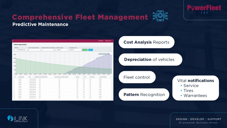 - Ανάλυση δεδομένων για κόστη συντήρησης, χρήση καυσίμων και παραγωγικότητα πόρων